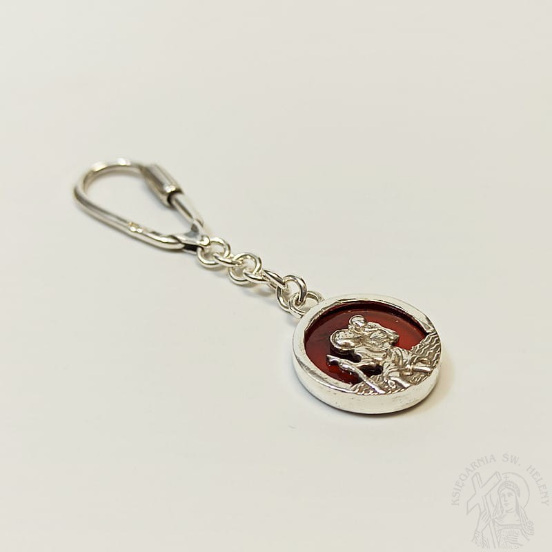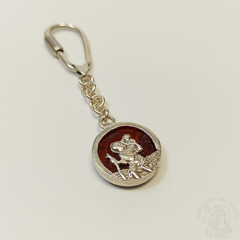 BRELOK SREBRNY ZE ŚW.KRZYSZTOFEM BURSZTYNOWY MAŁY