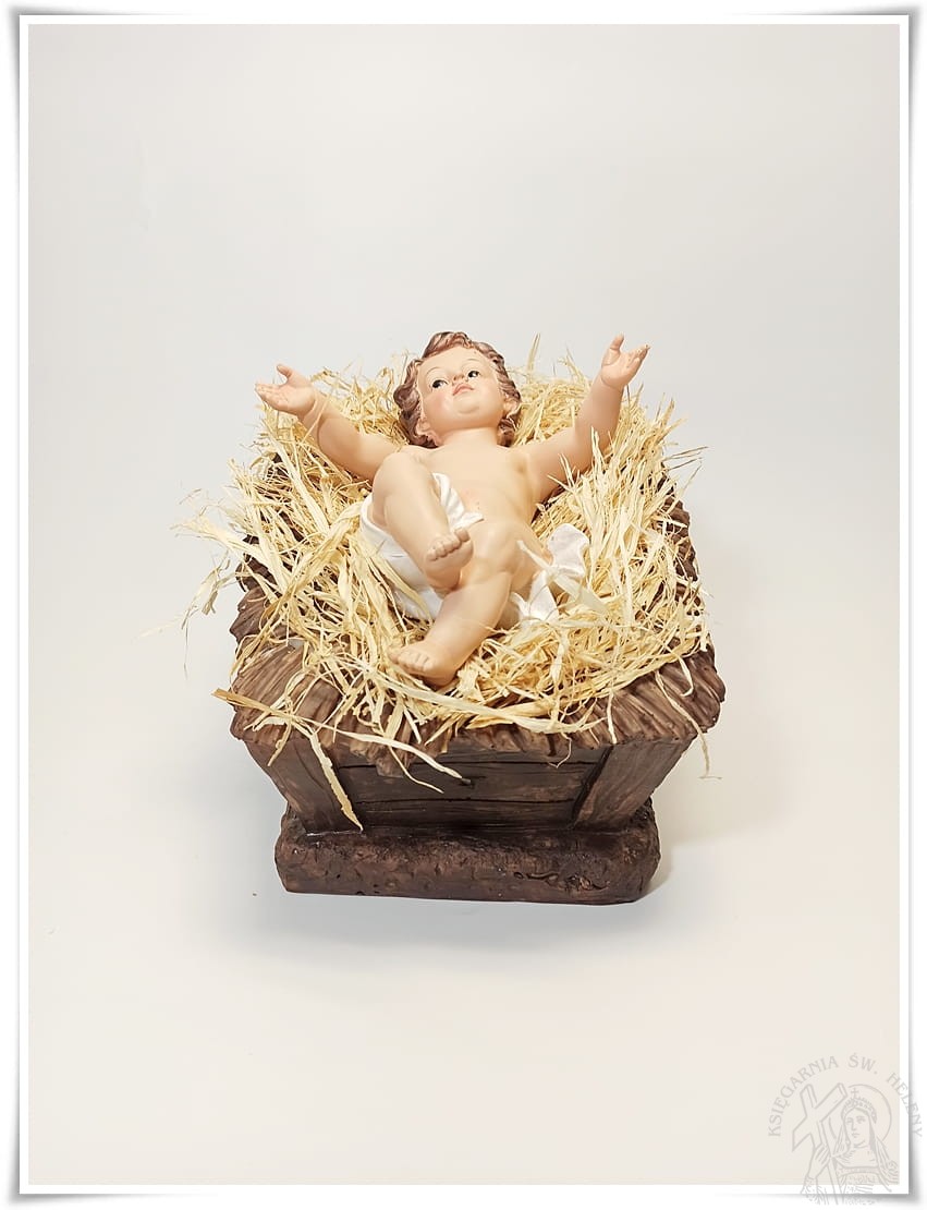 Dzieciątko Jezus w żłóbku wykonane zostało z żywicy syntetycznej. Bardzo ładnie i dokładnie wykonane, kolory naturalne.