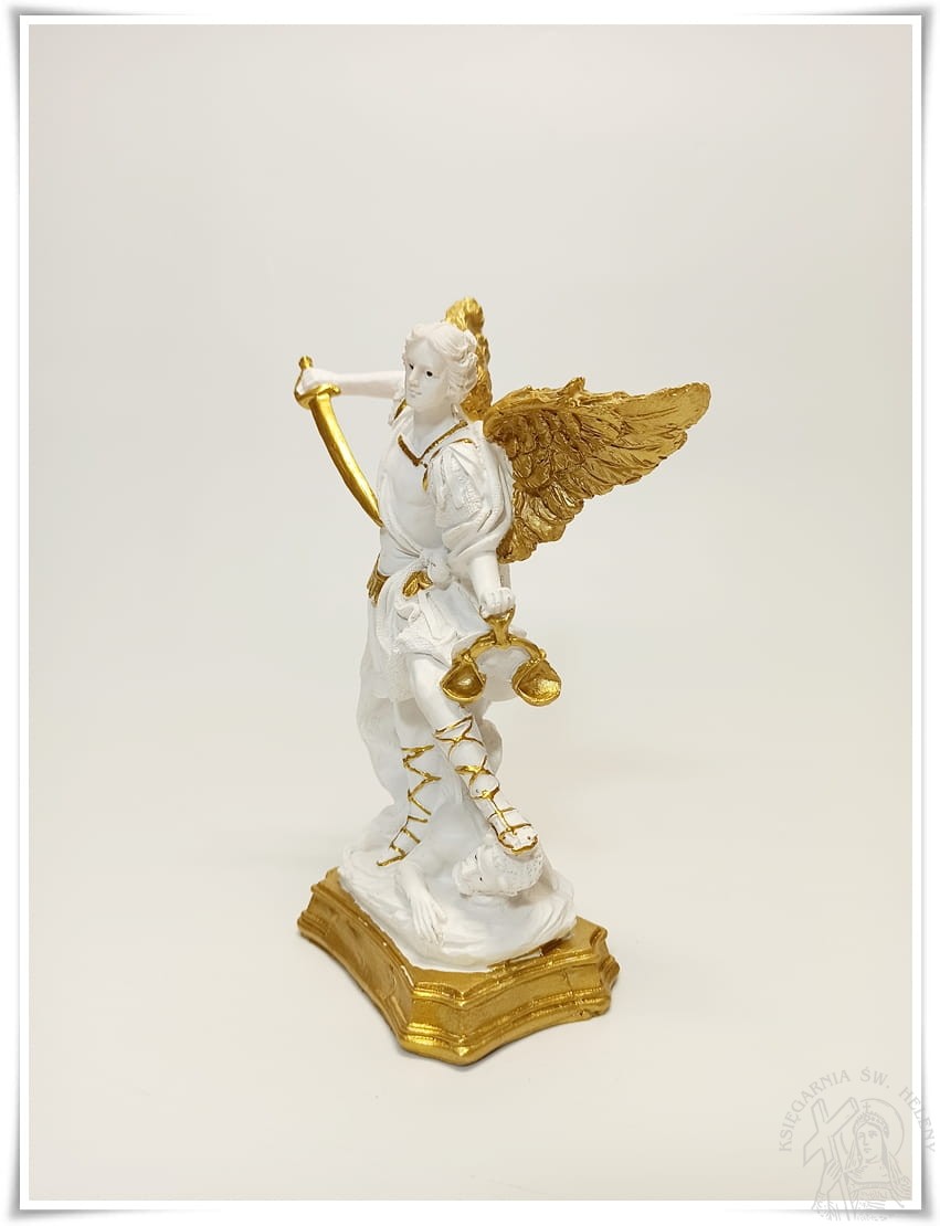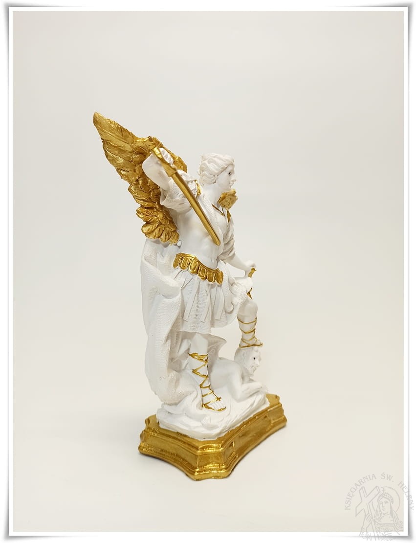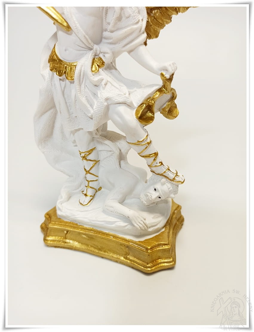 Figura św. Michała Archanioła wykonana z żywicy syntetycznej, trwałego materiały. Zdobiony ręcznie. Wielki wódz zastępów Anielskich, zwalczający szatana.