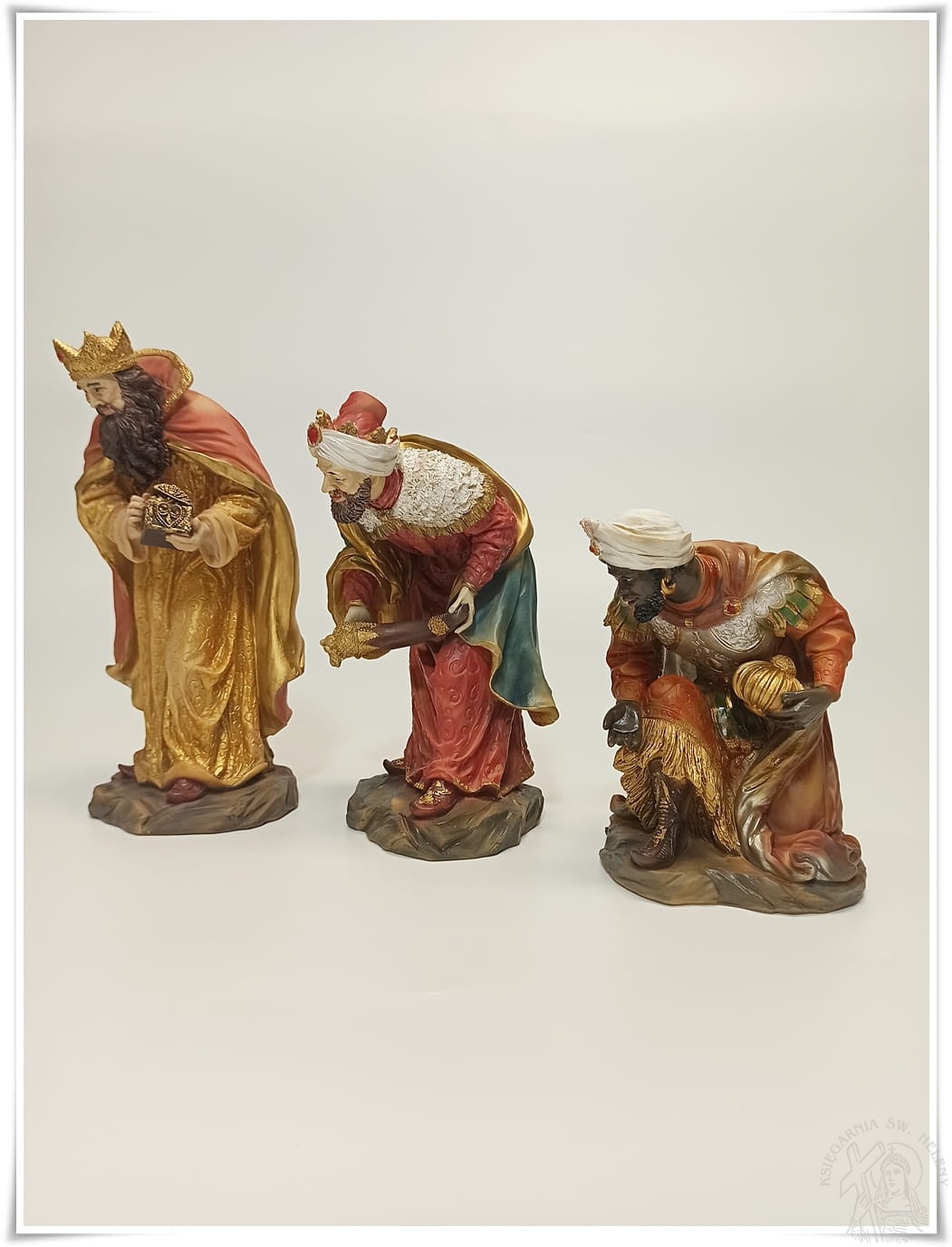 Figury do szopki Bożonarodzeniowej wykonane zostały z żywicy syntetycznej. W skład zestawu wchodzi 11 figur o różnej wielkości, najwyższa ma wysokość 23cm. Figury starannie wykonane o ładnych twarzach i kolorze zbliżonym do naturalnego koloru skóry. Zestaw zawiera figury przedstawiające główne postacie witające nowo narodzone Dziecię Boże w Betlejem. Przepiękne figury ozdobią dom i nadadzą właściwego uroku na czas bożonarodzeniowy, wprowadzając właściwy nastrój.