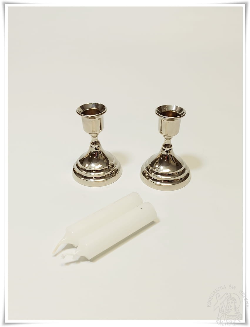 Tradycyjny komplet kolędowy w kolorze złotym. W zestawie znajduje się tradycyjny krzyż, 2 wysokie świeczniki i świece. Wszystko zapakowane w kartonik łatwy do przechowywania kompletu.
