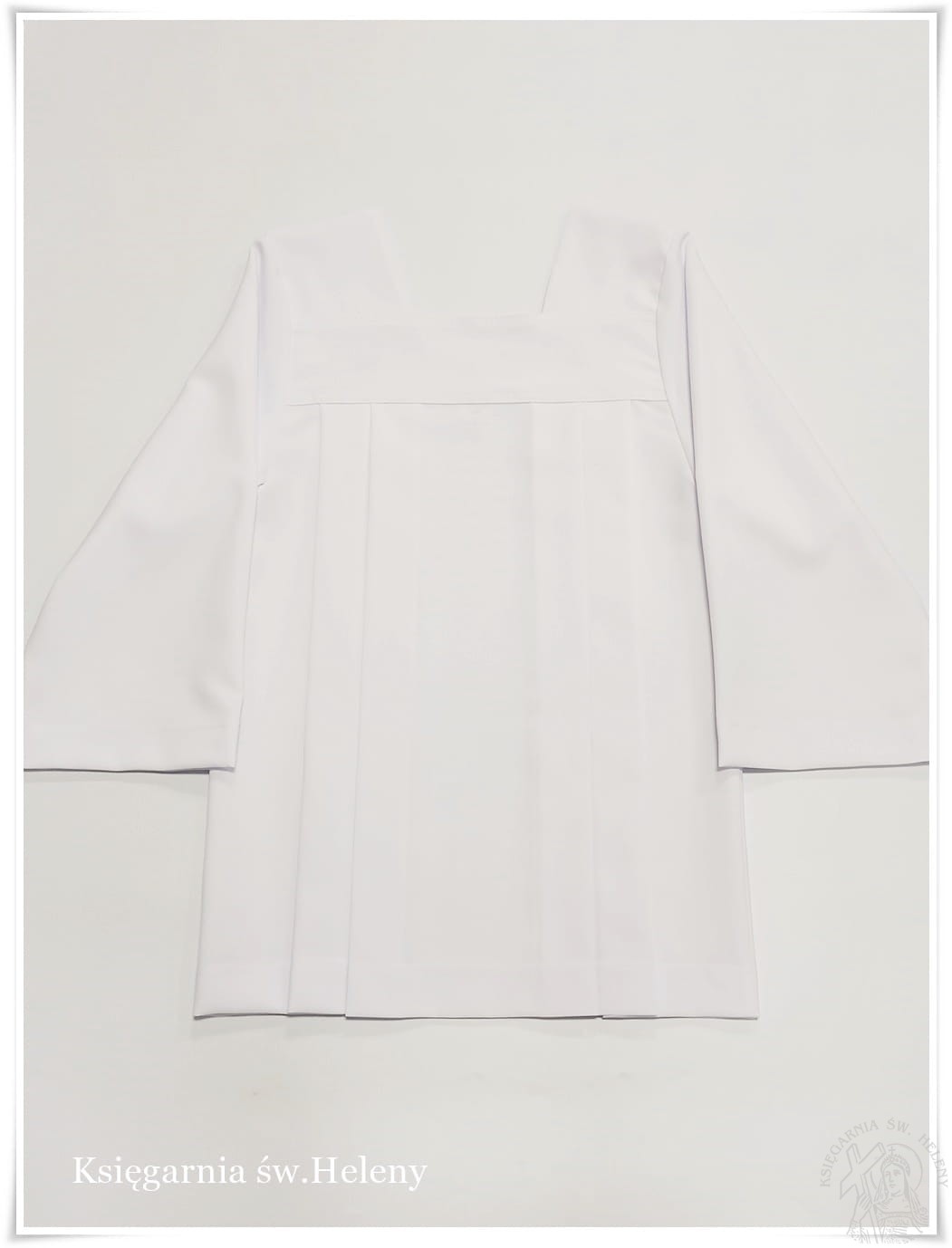 Komża dla ministranta, materiał stretch, wygodny i niegniecący się, odporny na uszkodzenia.