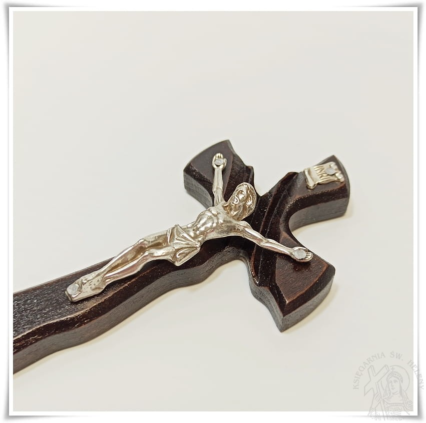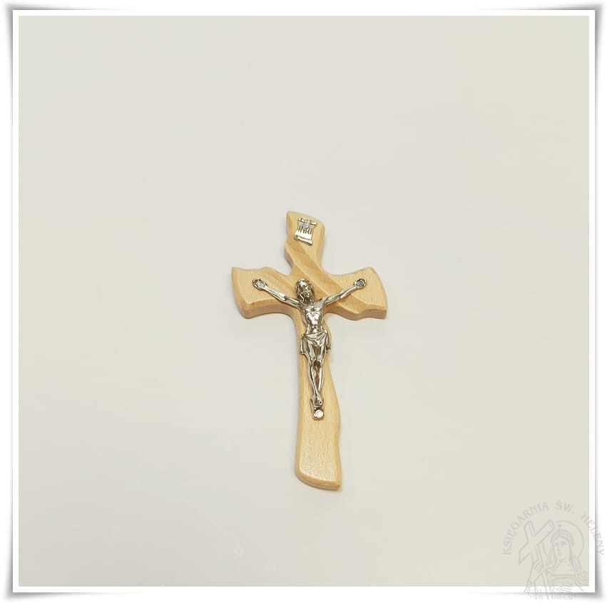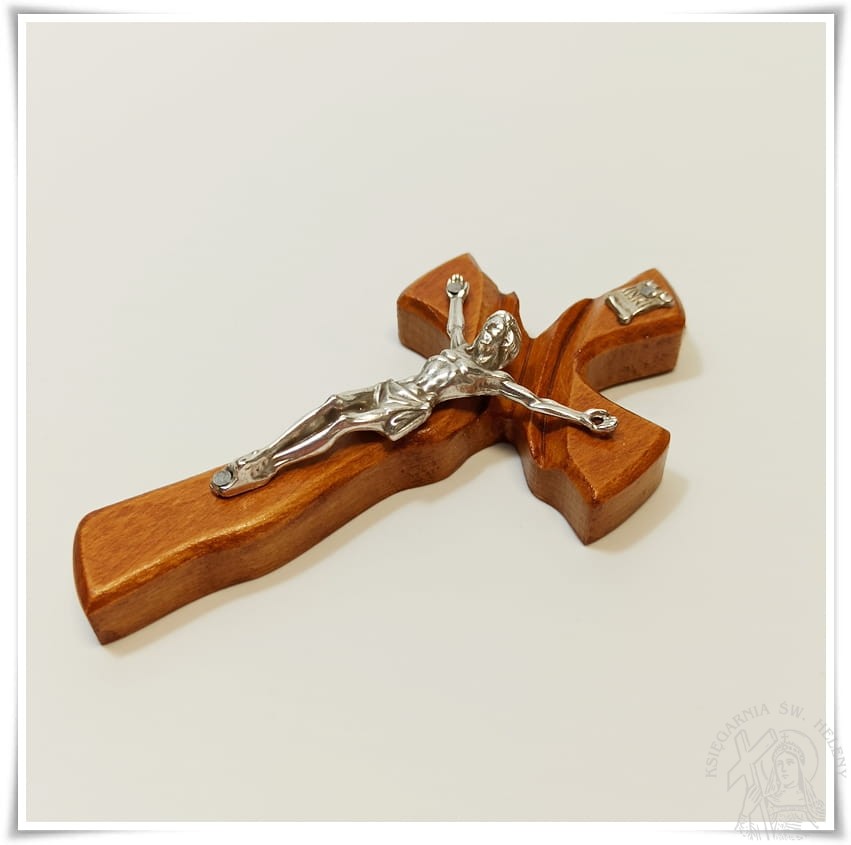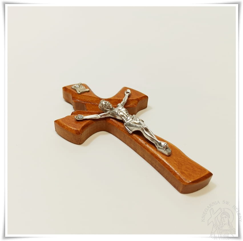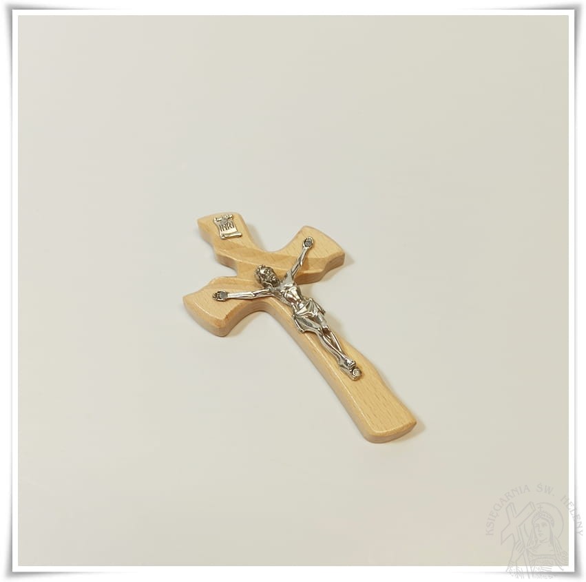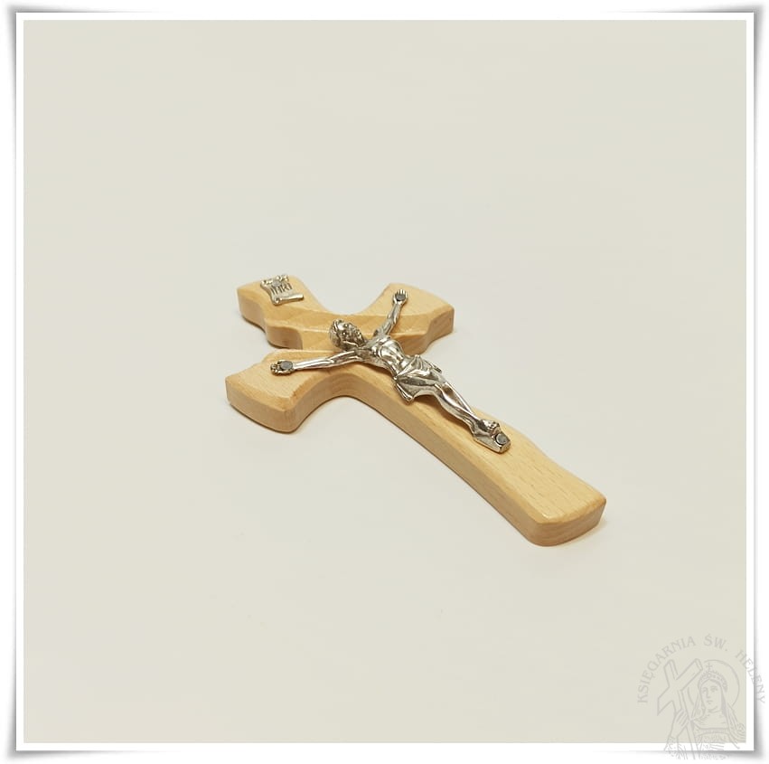 Krzyż drewniany, lakierowany, wykonany z drewna bukowego, frezowany.