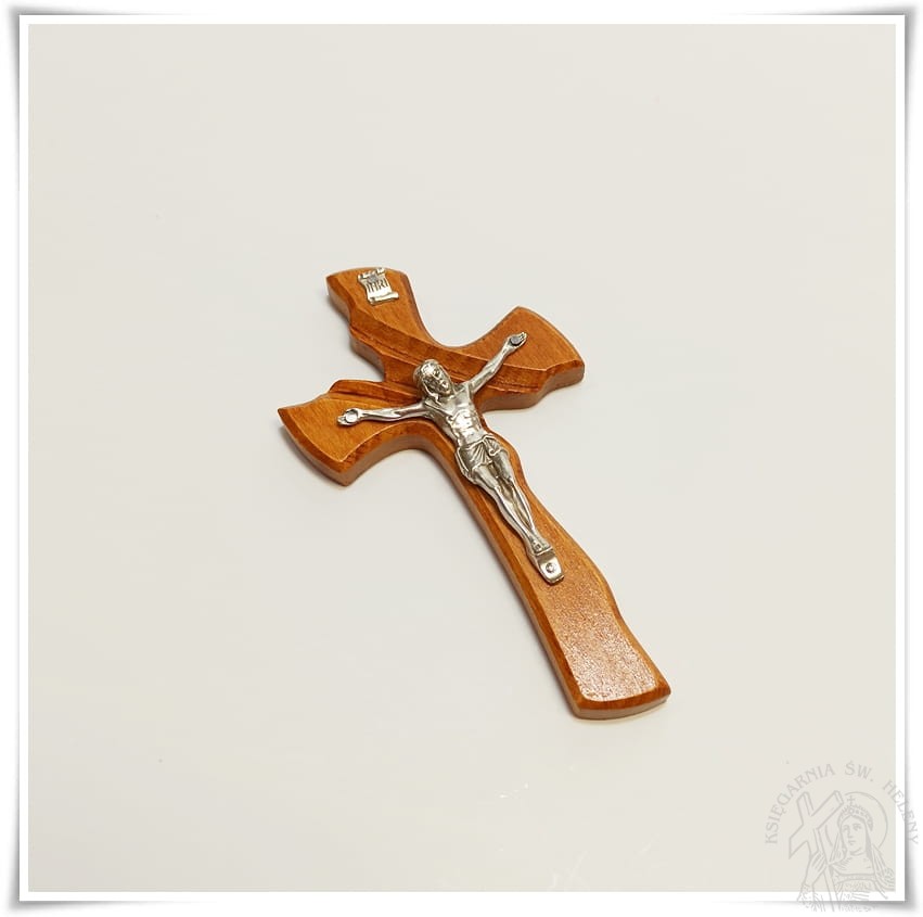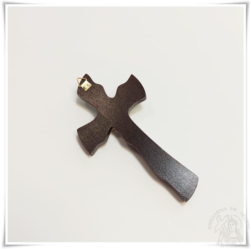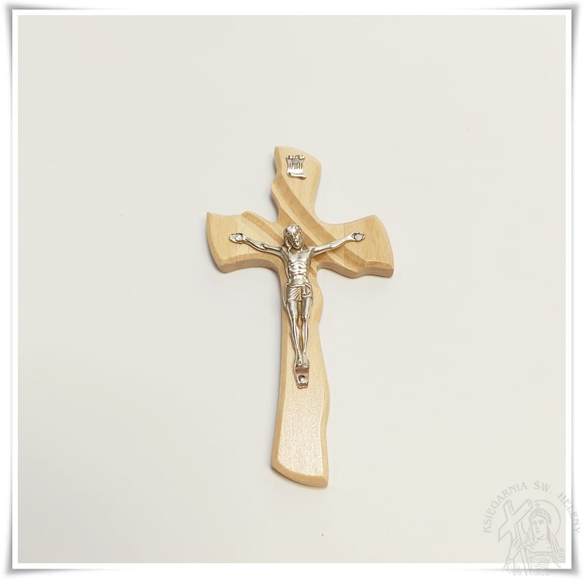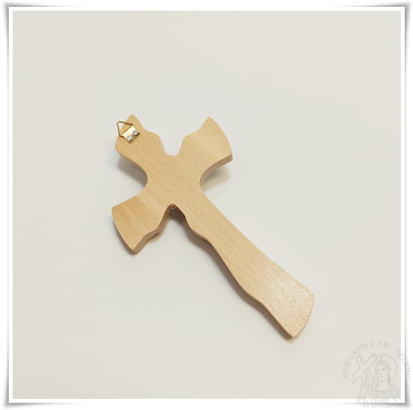 Krzyż drewniany, lakierowany, wykonany z drewna bukowego, frezowany.