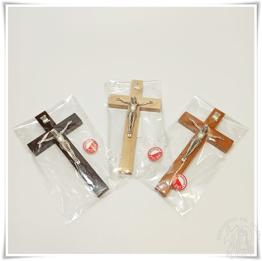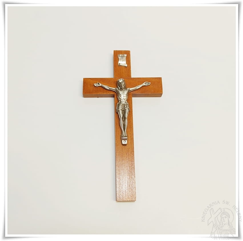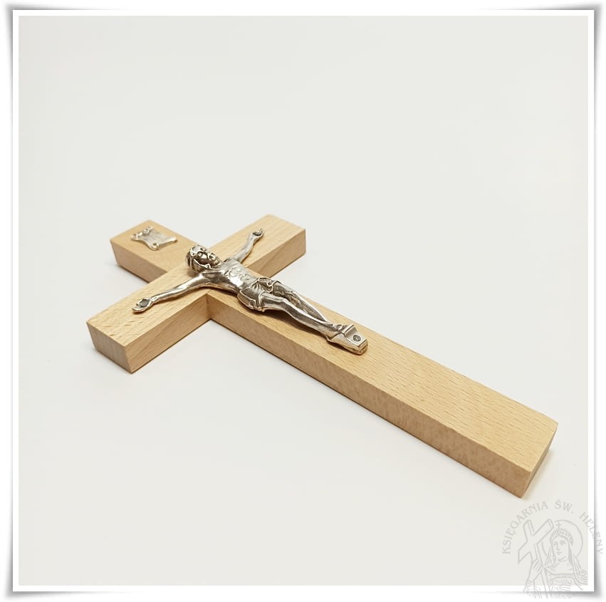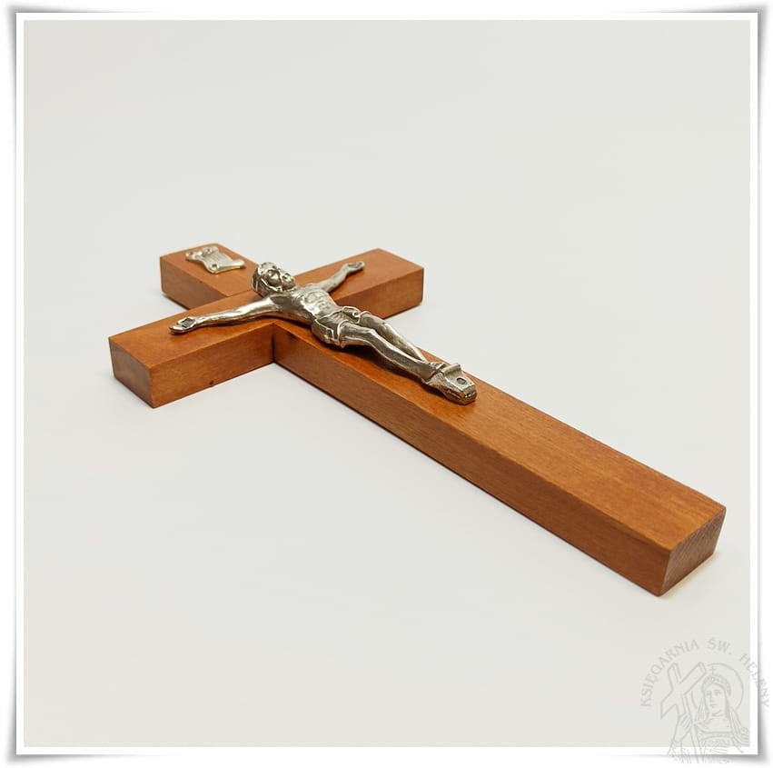 Krzyż drewniany, lakierowany, wykonany z drewna bukowego.