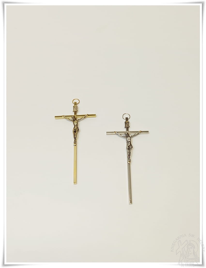 Krzyż wykonany z pręta mosiężnego pokrytego powłoką galwaniczną.