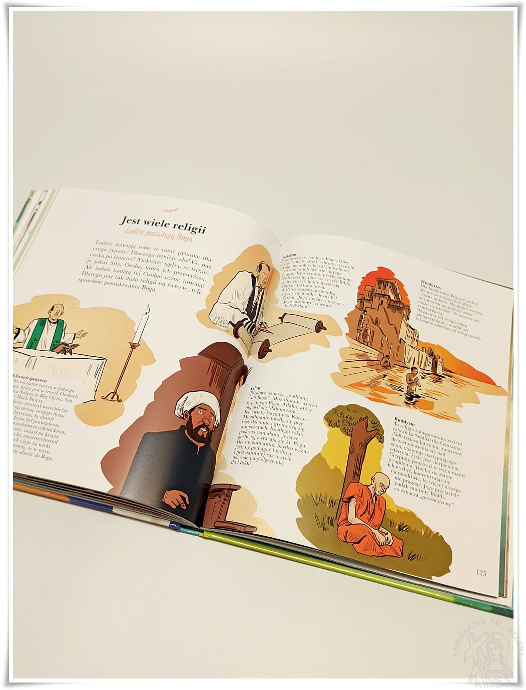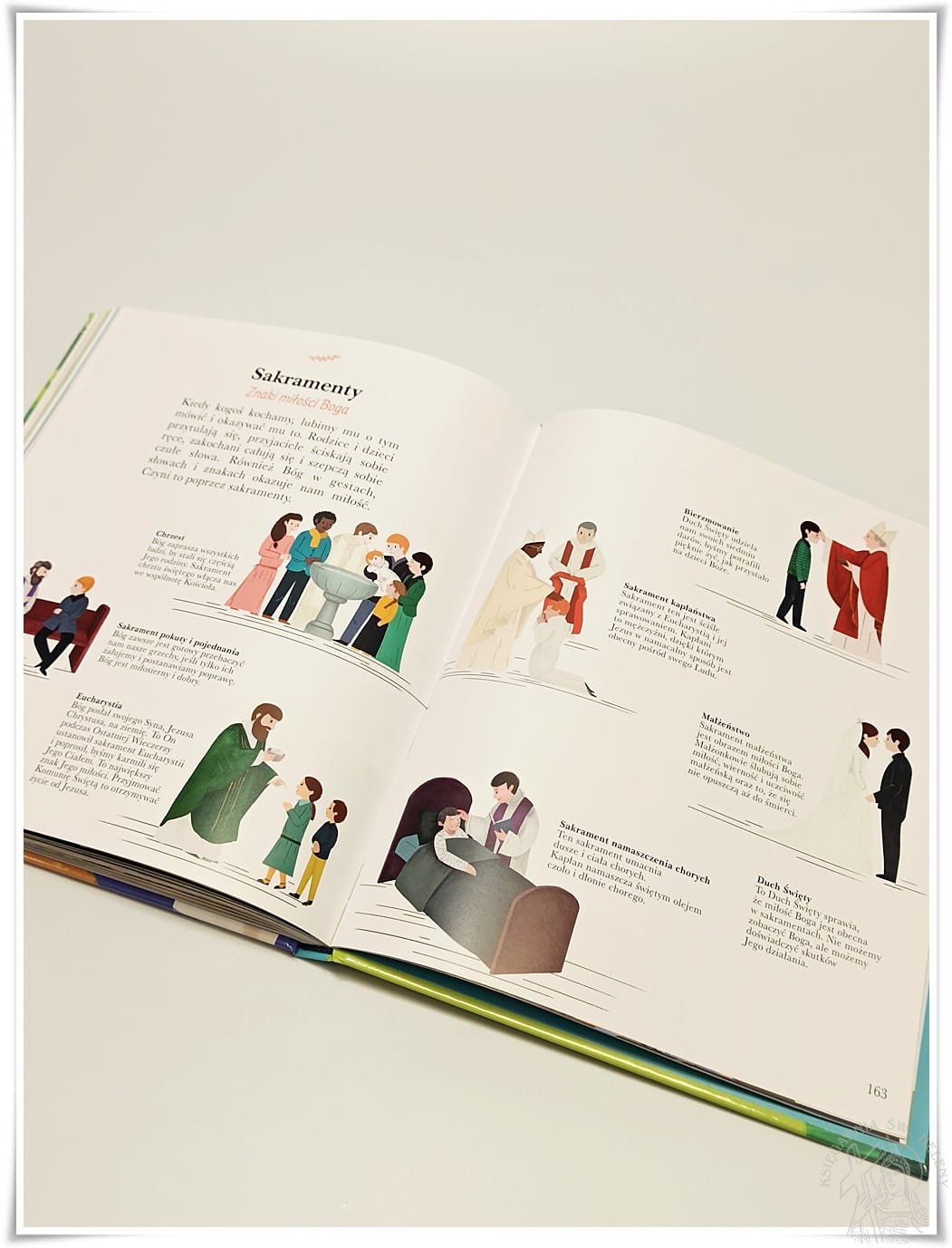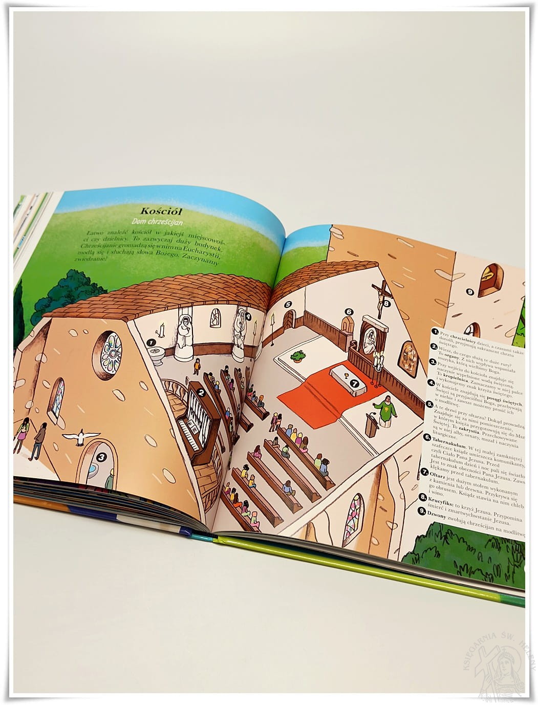 Wspaniała książka, w której dzieci znajdą wszystko, co powinny wiedzieć na temat swojej rzymskokatolickiej wiary. Jej kolorowe strony podsuną im ponadto wiele cennych informacji dotyczących otaczającego je świata. Encyklopedia została podzielona na trzy duże rozdziały: pierwszy dotyczy Biblii, drugi historii chrześcijaństwa, trzeci zaś porusza ciekawe kwestie dotyczące m.in. liturgii, teologii moralnej, etyki chrześcijańskiej, modlitwy czy kultu świętych… Każdy z nich jest zbiorem rzetelnych informacji i pragnie zachęcić dzieci do świadomego przeżywania wiary.