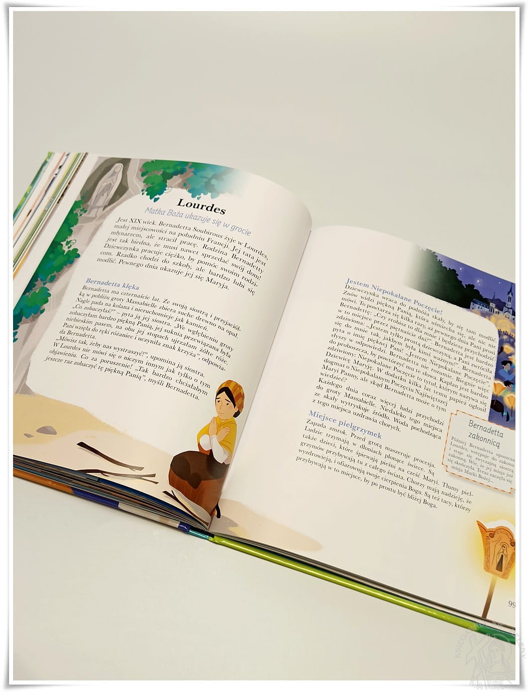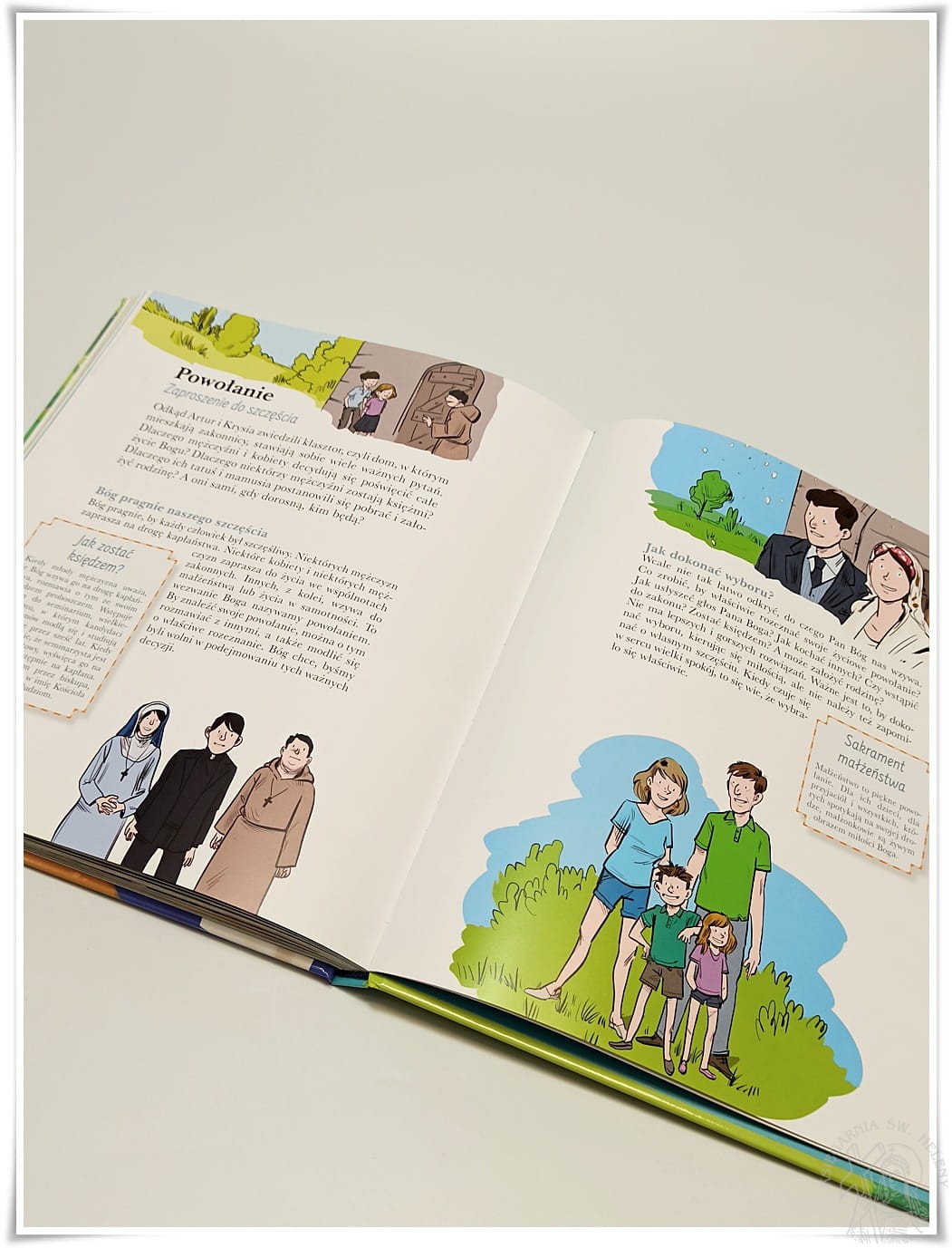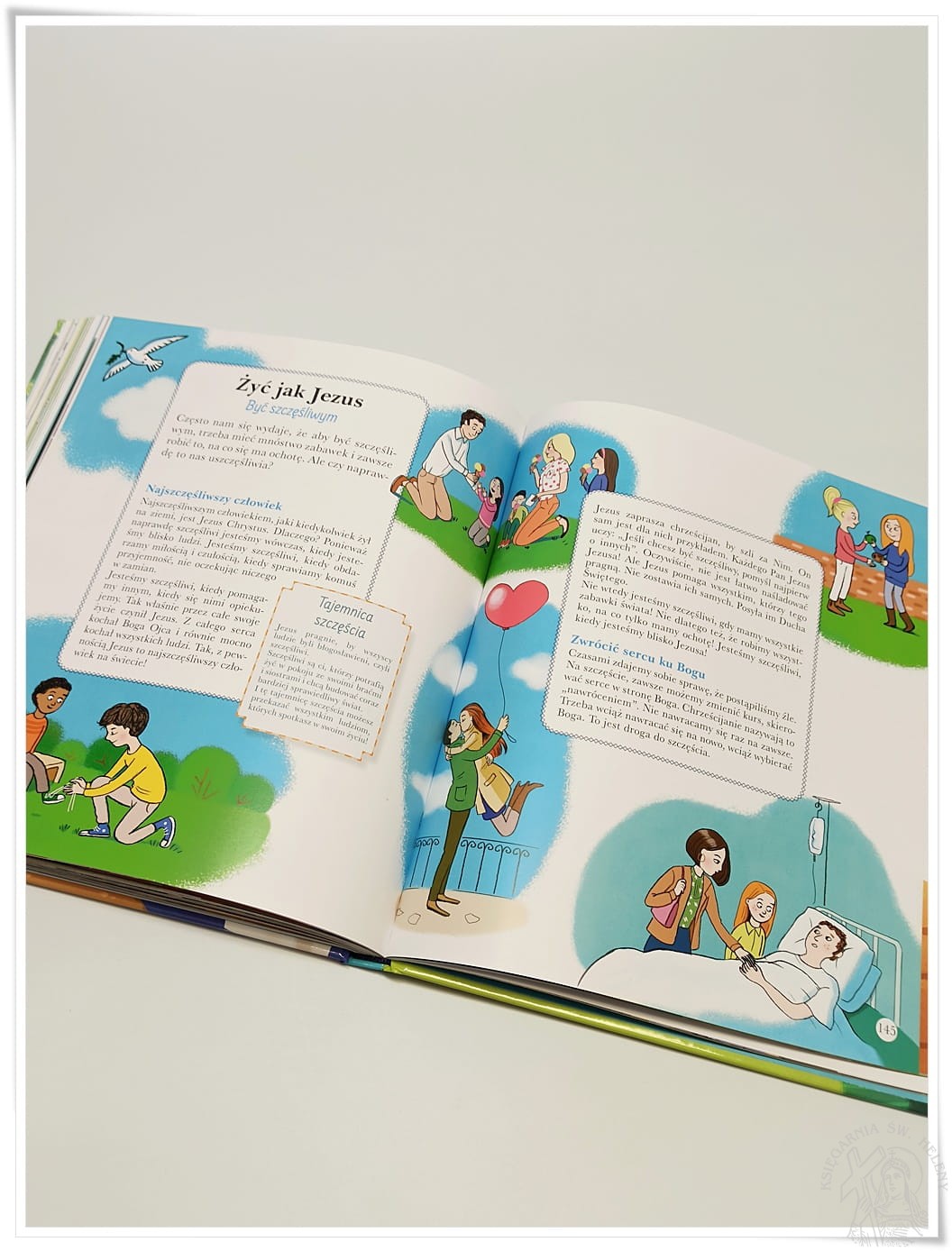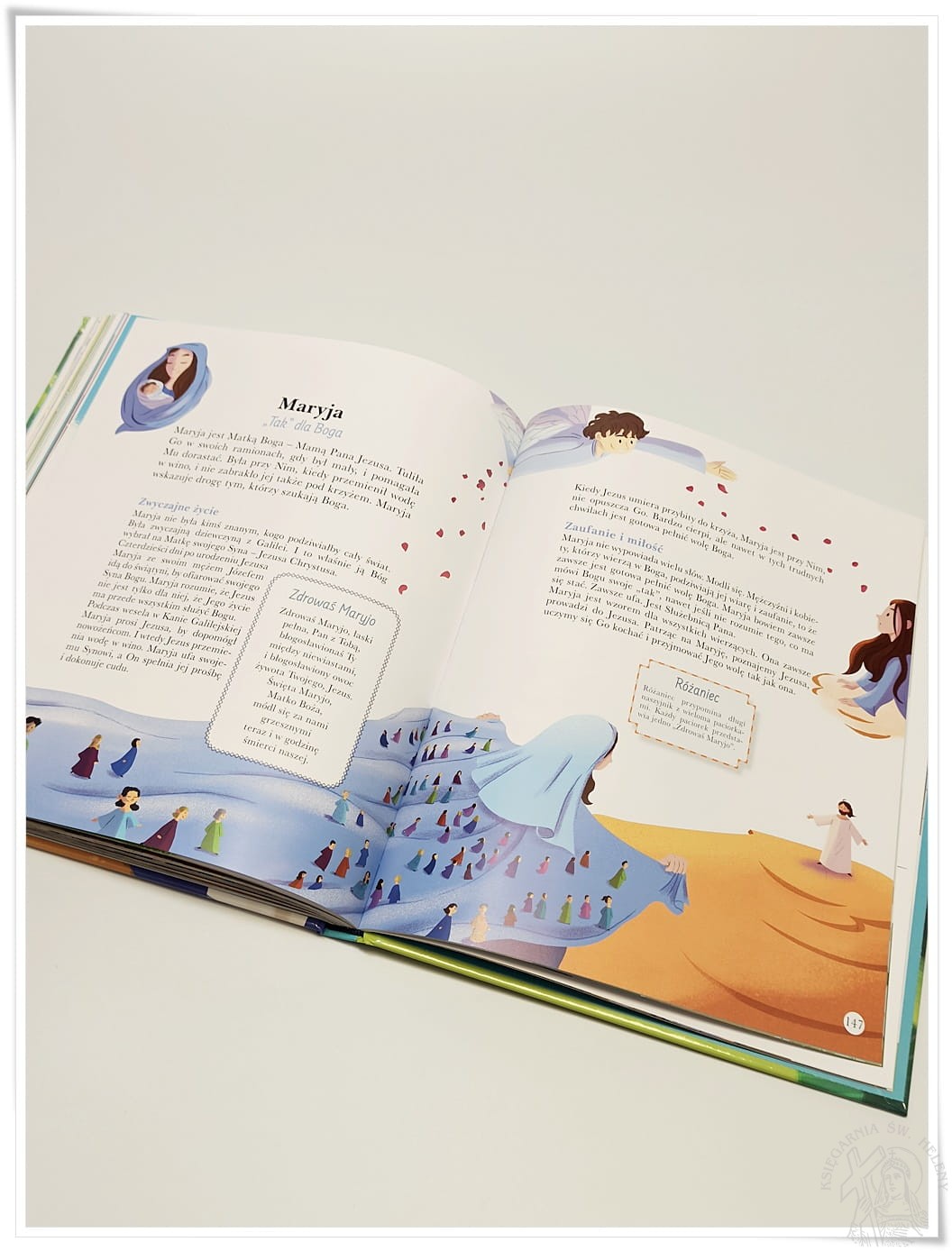Wspaniała książka, w której dzieci znajdą wszystko, co powinny wiedzieć na temat swojej rzymskokatolickiej wiary. Jej kolorowe strony podsuną im ponadto wiele cennych informacji dotyczących otaczającego je świata. Encyklopedia została podzielona na trzy duże rozdziały: pierwszy dotyczy Biblii, drugi historii chrześcijaństwa, trzeci zaś porusza ciekawe kwestie dotyczące m.in. liturgii, teologii moralnej, etyki chrześcijańskiej, modlitwy czy kultu świętych… Każdy z nich jest zbiorem rzetelnych informacji i pragnie zachęcić dzieci do świadomego przeżywania wiary.