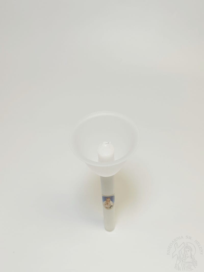 Osłonka na świecę o średnicy 2cm. Osłonka plastikowa chroni świecę przed zgaszeniem i pełni rolę okapnika zatrzymując cieknącą parafinę.