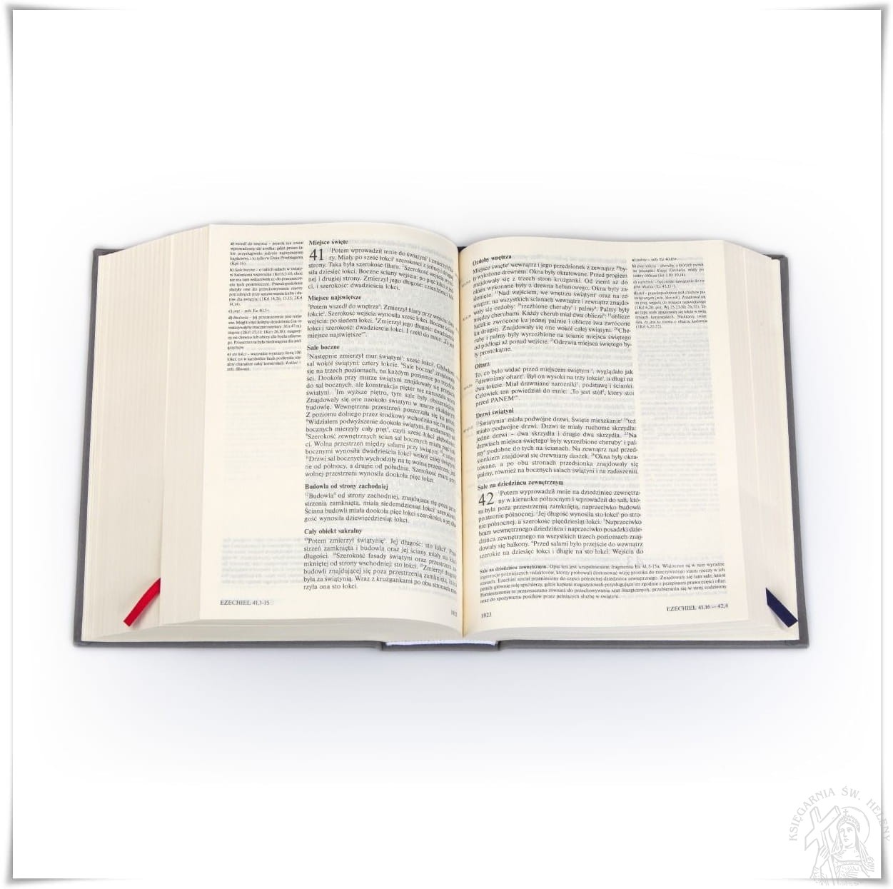 Nowy przekład Pisma Świętego zawiera liczne komentarze, przypisy, wprowadzenia do poszczególnych ksiąg, teksty paralelne, tablice chronologiczne, mapy, a także słownik terminów biblijnych. Te pomoce pomogą Ci zrozumieć tekst biblijny, a także dostrzec główne myśli i przesłanie w nim zawarte.