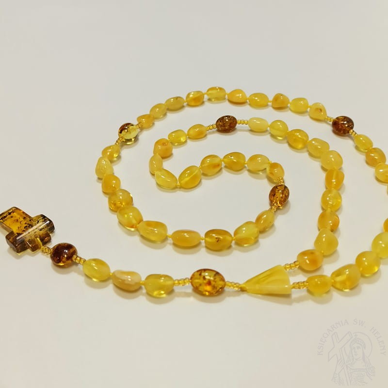 Różaniec bursztynowy, skarbami natury wzbogacony.