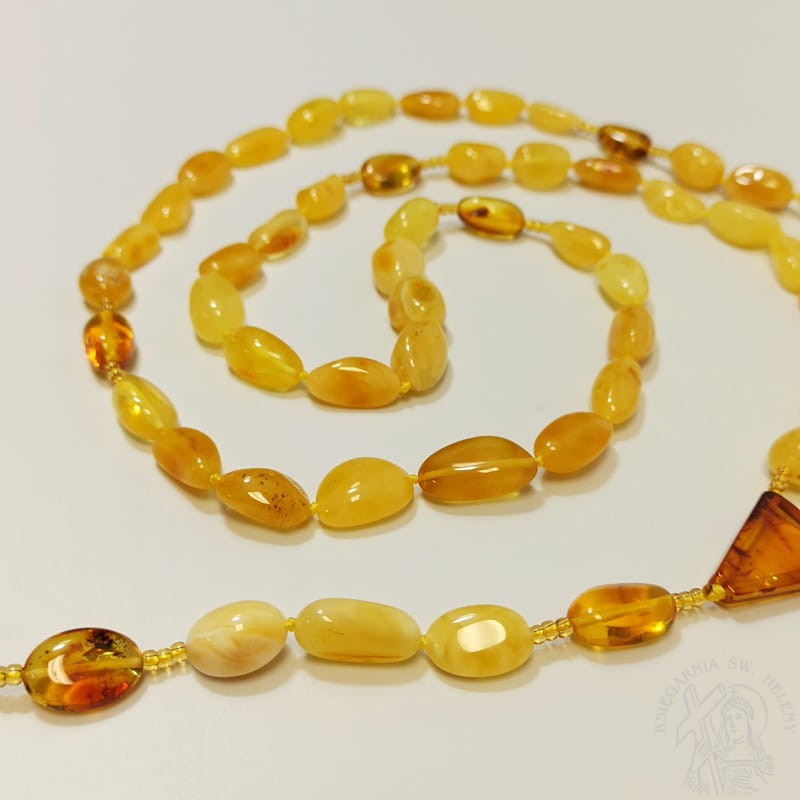 Różaniec bursztynowy, skarbami natury wzbogacony.