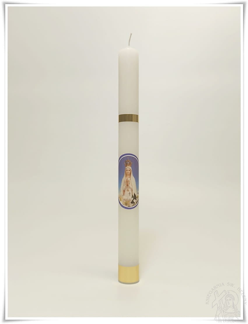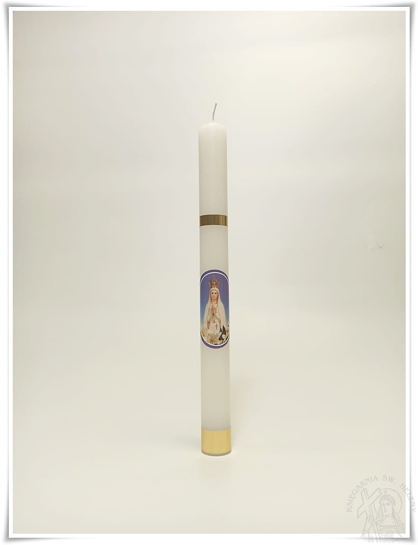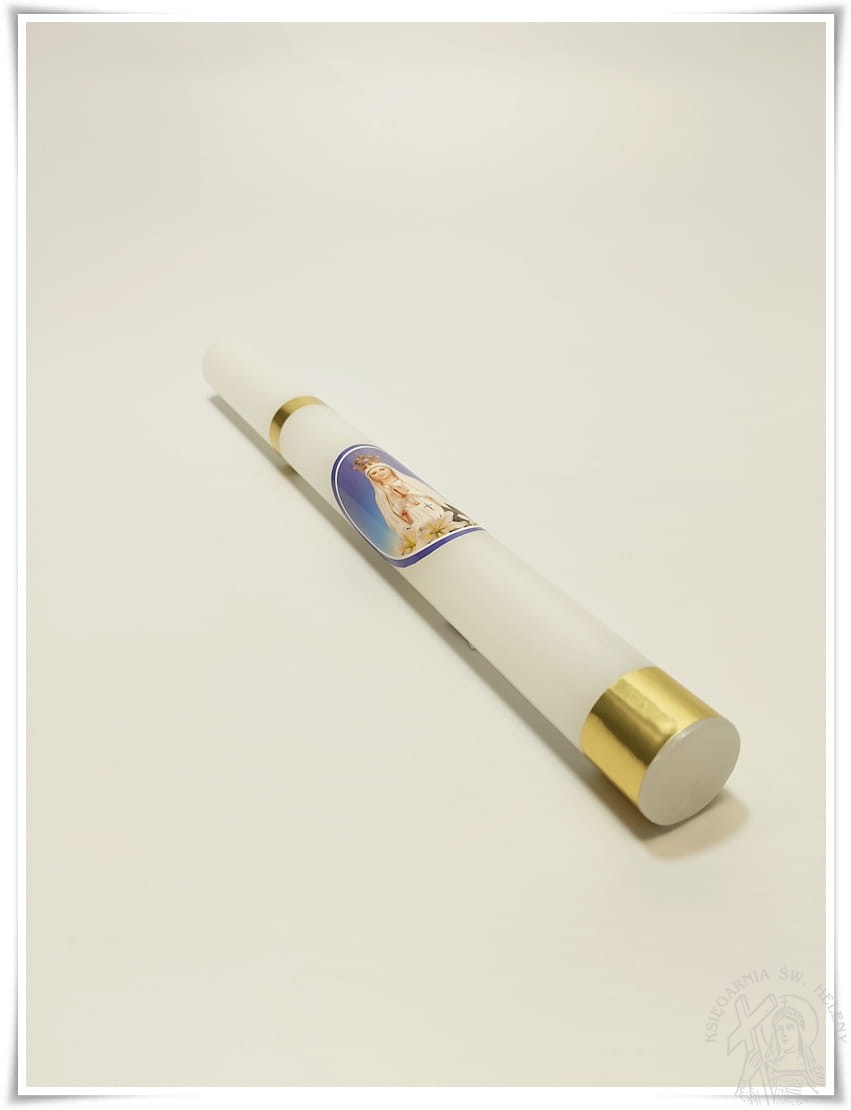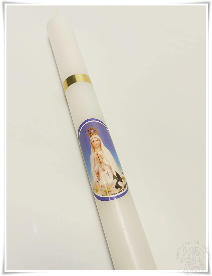 Świeca gromnica z wizerunkiem Matki Bożej Fatimskiej, tzw. Fatimka. Doskonała na nabożeństwo Fatimskie i procesję.