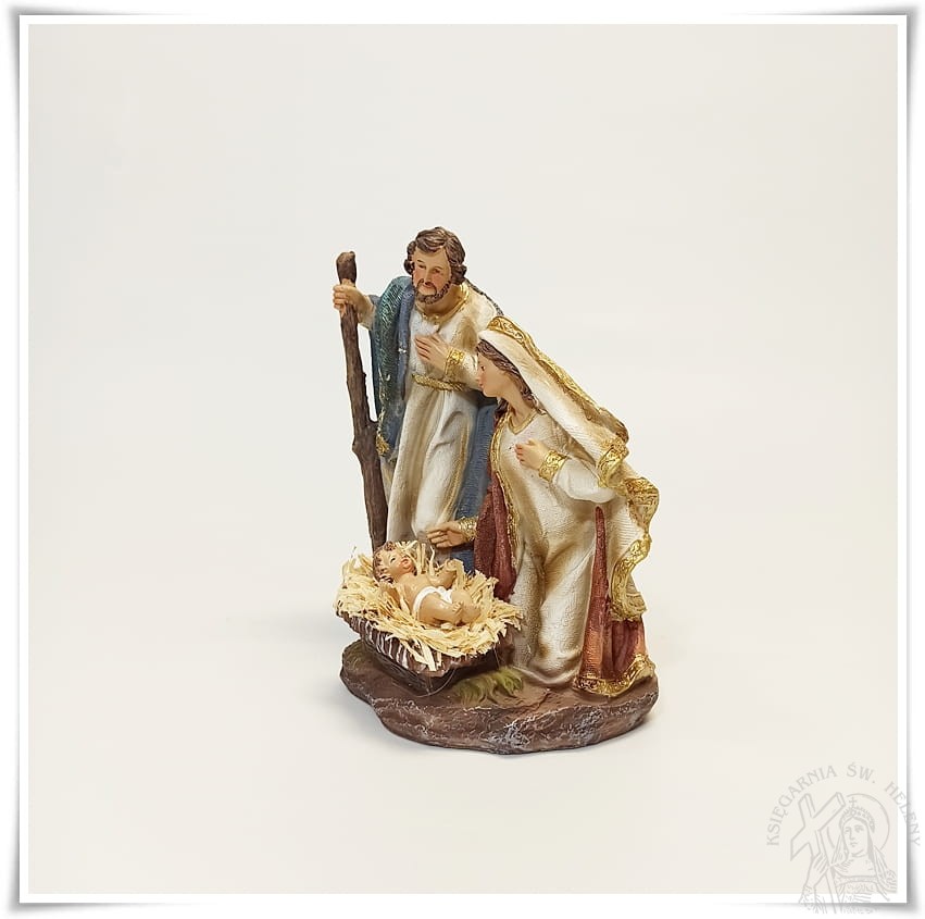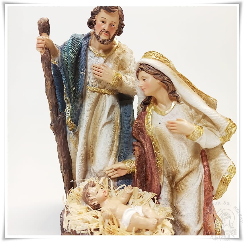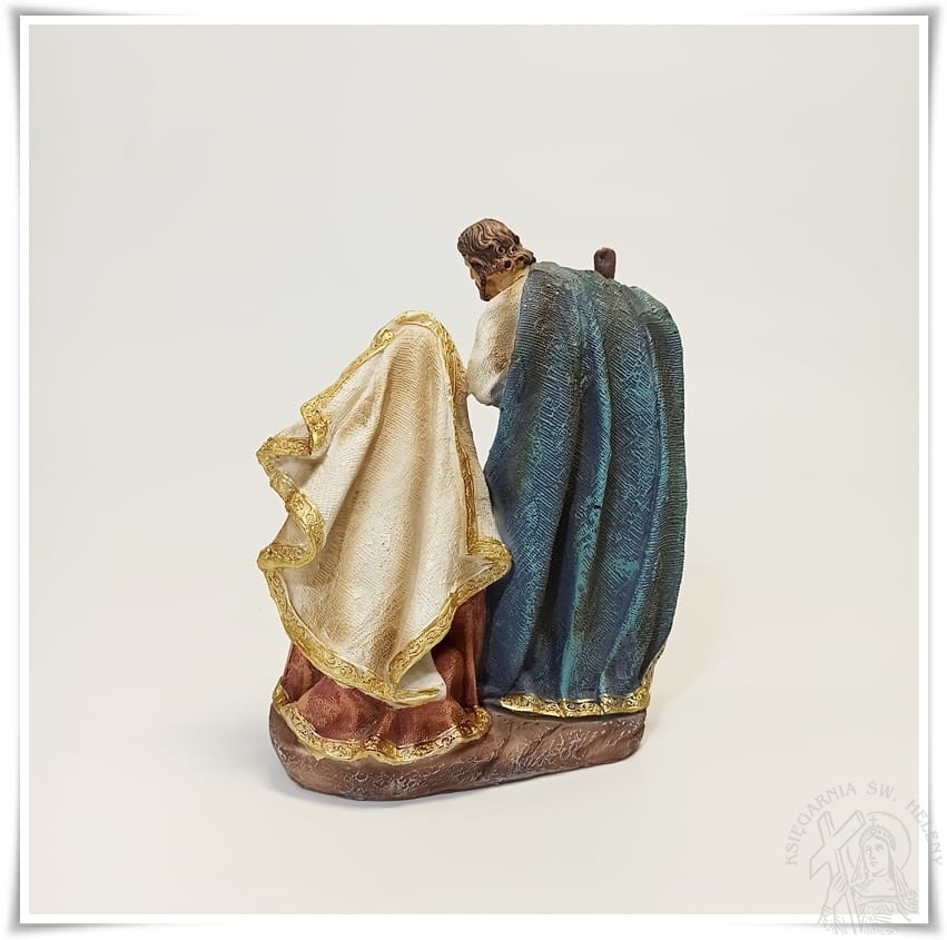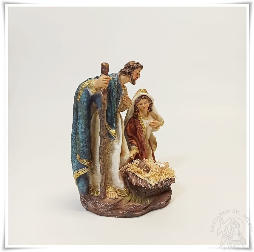 Figura Świętej Rodziny wykonana z żywicy syntetycznej jako jedna bryła, jeden element. Powierzchnia figur odzwierciedla tkaninę nadając figurom bardzo naturalny wygląd. Piękna ozdoba świąteczna o wysokości 20cm, wspaniała figura do szopki Bożonarodzeniowej w domu.